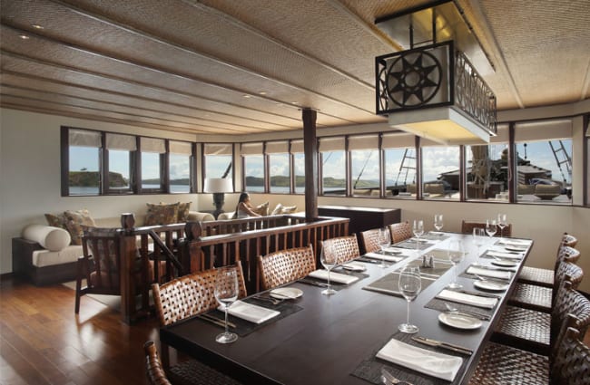Elsewhere there’s an air-conditioned library with TV and computer, the Majapahit Saloon—an air conditioned indoor bar lounge-cum-dining area with seating for up to 10 people— and plenty of space outside on the outdoor deck to unwind and enjoy the views from the oversized day beds shaded by umbrellas—perfect for relaxing day or night and enjoying the fresh sea breezes. And with a spa therapist aboard the vessel, guests can succumb to the soothing pleasures of a signature Alila massage onboard or on a nearby private beach.