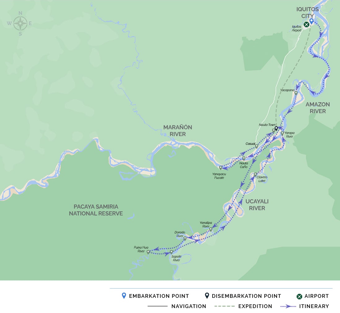 From June to October: Iquitos – Nauta – Embarkation – Marañon River