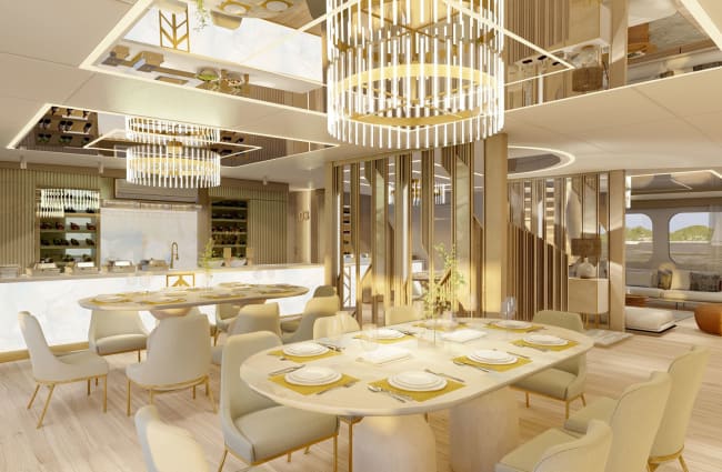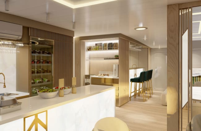 The Galaxy Sirius offers a culinary journey like no other, with gastronomic delights prepared by experienced chefs in the kitchen located on the lower deck and served in the dining room on the principal deck or in the alfresco lounge on the upper deck.