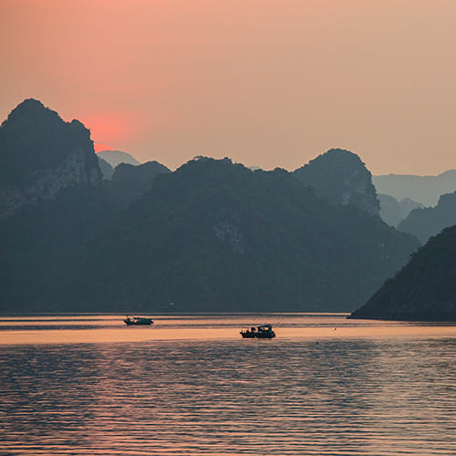 Back on board, and during the time we sailing northbound again, our chef invitees for an interactive cooking class in the restaurant’s big open kitchen. Learn about local ingredients as well as the preparation of classic Vietnamese dishes. You are warmly invited to lend a hand. As the sun sets, we arrive at our tranquil anchor spot for the night. Kick bank and let reveal in your mind’s eye today’s adventures as night falls gently over the bay. After a delicious dinner, you may like to unwind at our bar with a digestif or watch a movie in the cinema which is set up in the dining area later on. Or join our team and have some fun fishing for squid before retiring to your room.