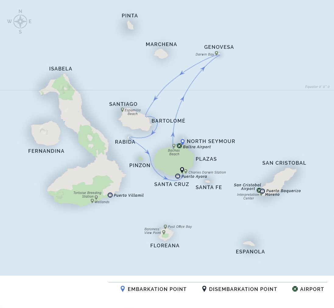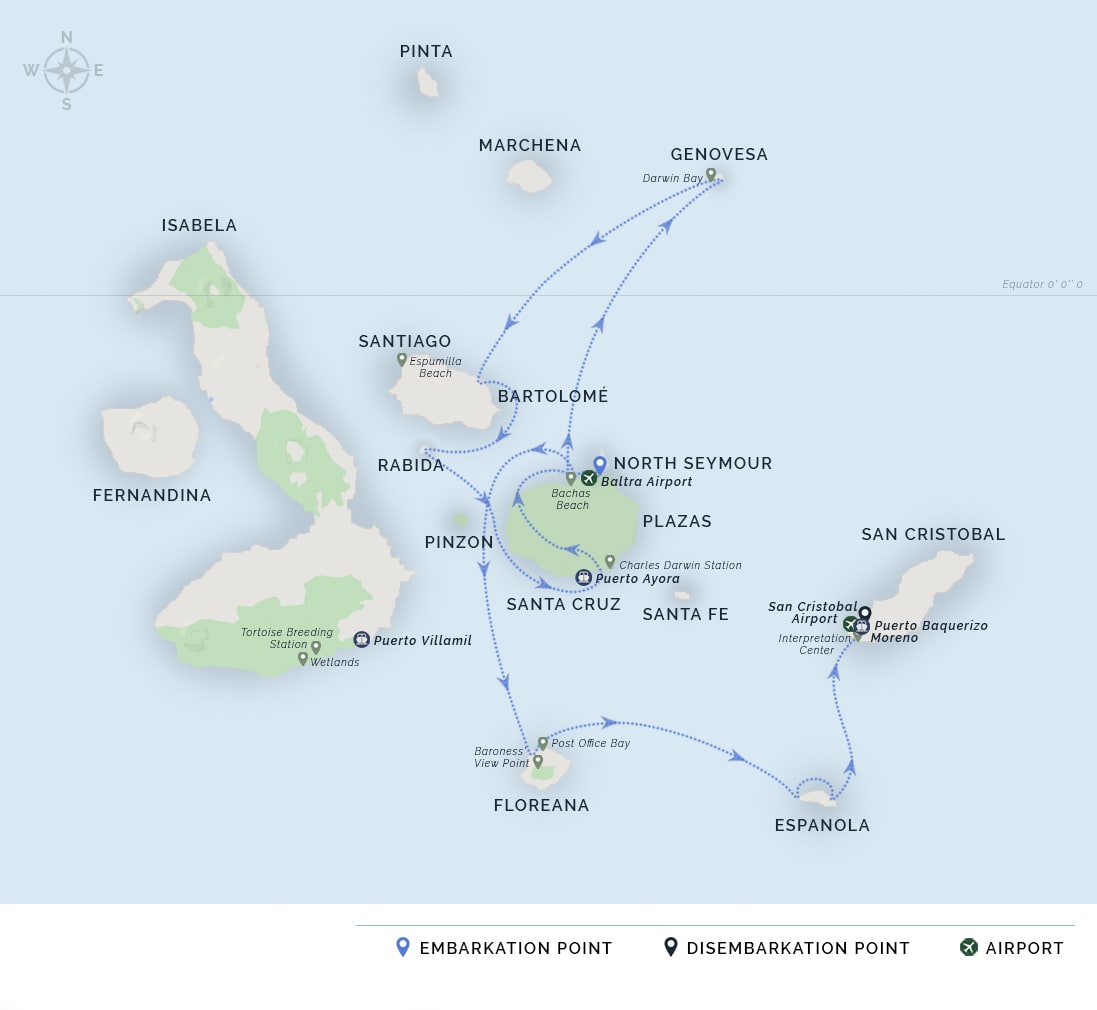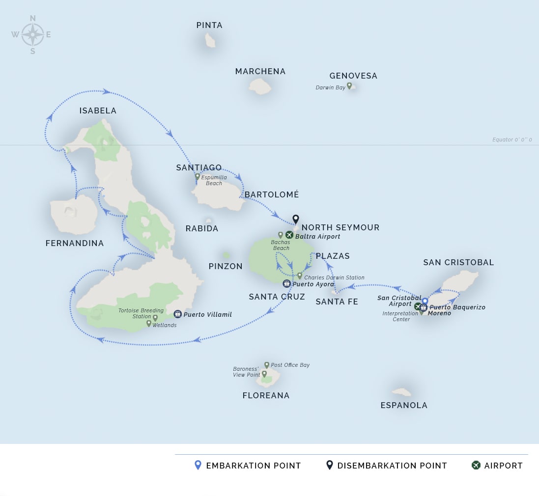 AM: You will arrive at Baltra Island in the morning. After passing through immigration and baggage claim, you will be met by the Infinity Galapagos staff and transferred to the yacht.