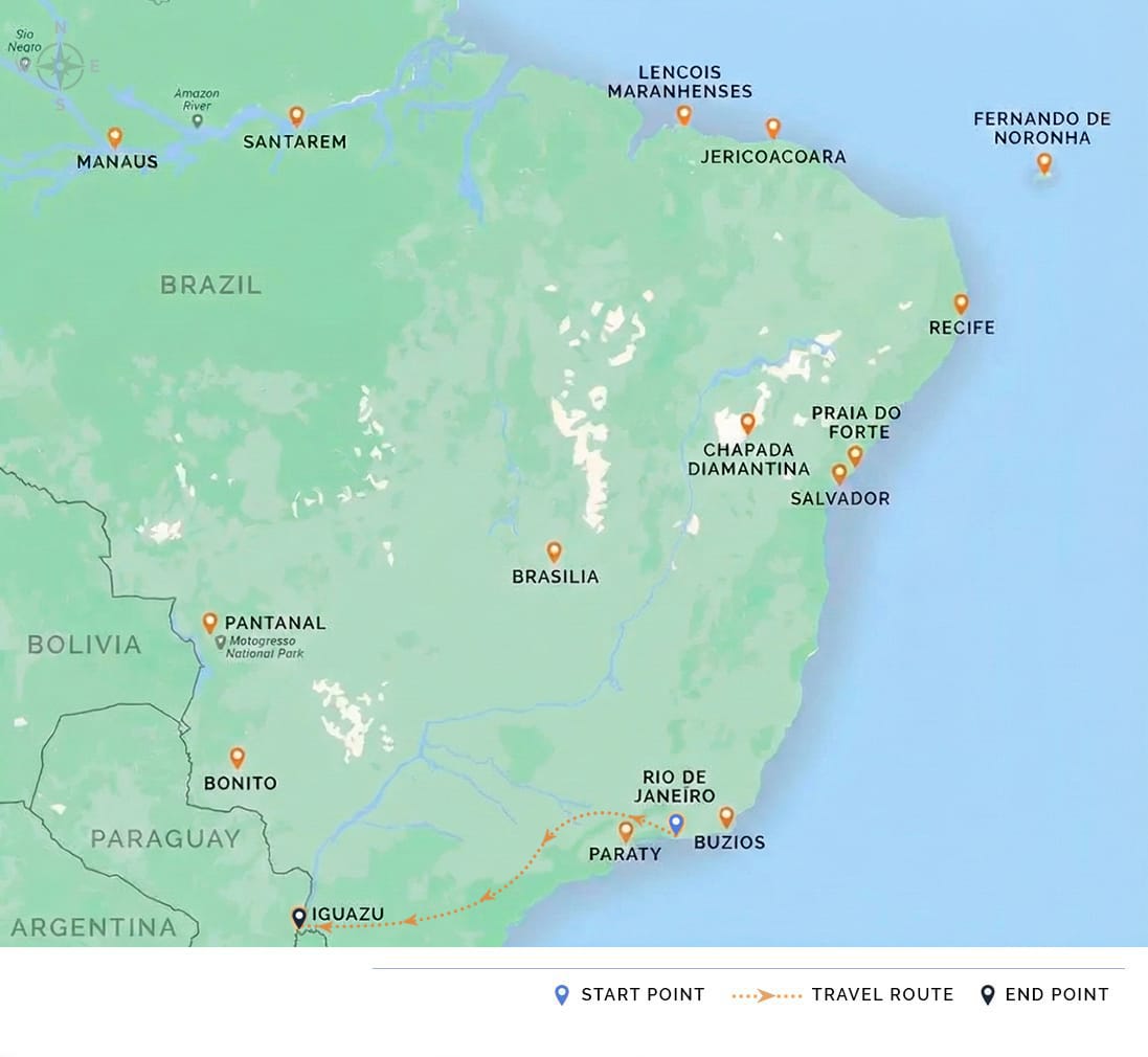 As you buckle up for your journey, take a moment to reflect on the incredible sights and sounds of the past few days. Although this specific adventure is coming to a close, the memories of Brazil will surely last a lifetime! We wish you a safe and pleasant flight home!