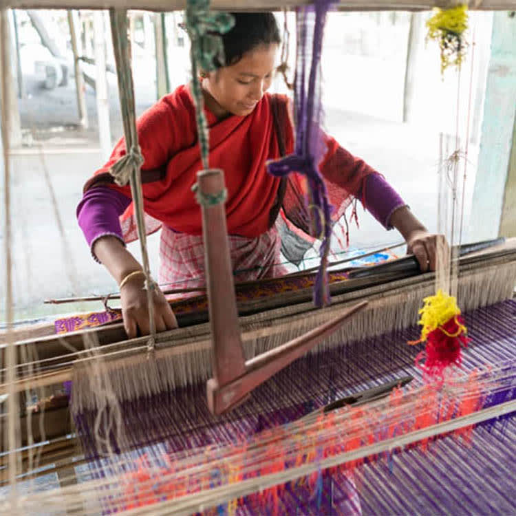 PM: Meet at Guwahati airport and transfer to our cruise at Pandu port. Enjoy lunch while cruising downstream to Sualkuchi. An afternoon walk through Sualkuchi, a bustling little town that is the centre of Assamese silk production, offers a chance to visit weaving workshops. Witness the whole process of silk manufacture, from cocoon and spinning, then dyeing to hand-weaving into exquisite mekhela chadars (a two-piece sari, the traditional attire of an Assamese woman). We then sail up to dock close to the great Saraighat bridge.