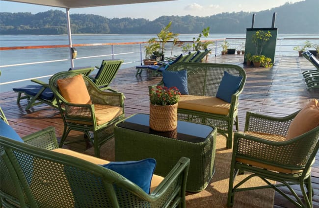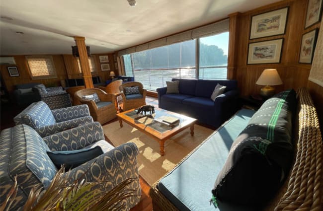 Social amenities include an air-conditioned saloon with a library and a vast sundeck with sunloungers for unparalleled viewing. After a day of immersive discovery, guests can indulge in a restorative treatment at the small onboard spa, or gather in the dining room to savor the acclaimed combination of authentic regional and Western cuisines, all served in a single seating.