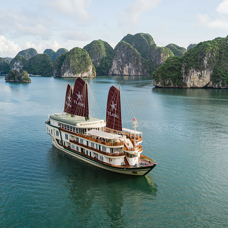 Launched in 2019, the three-sail Ylang offers cruises around Lan Ha Bay ‒ a secluded part of Vietnam’s Halong Bay. The vessel features a splendid Vietnamese design with French-Colonial accents and, with a maximum of only 20 guests, she is the only ship in the region to offer a distinct wellness theme during her voyages into this less-visited area.